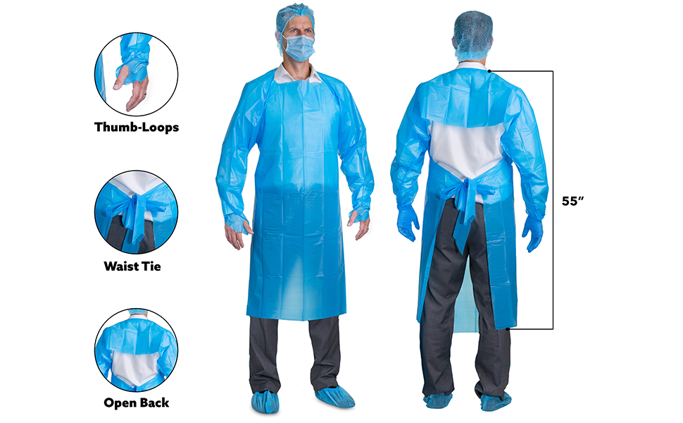 $10.00 – $135.00Price range: $10.00 through $135.00Add to Cart This product has multiple variants. The options may be chosen on the product pageDisposable CPE Polyethylene Gown – Open Back, Thumb Loops – Pack of 10
